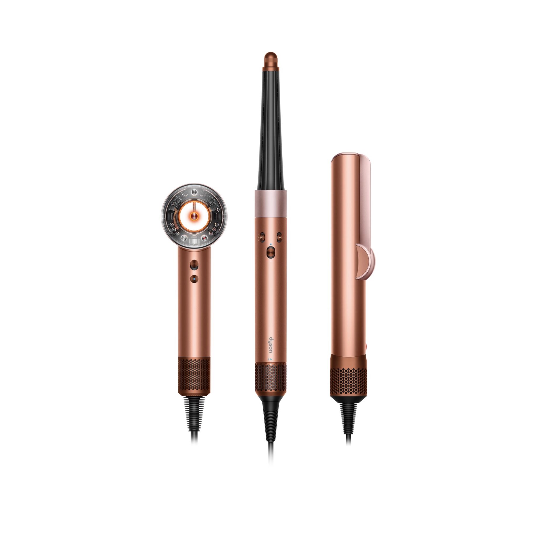 Inspirados por el resplandor de la luz del fuego, la alegría de reunirse con los seres queridos y el brillo de la celebración, los equipos de diseño de Dyson hicieron uso de su experiencia en CMF (color, material y acabado) para crear herramientas que funcionan a la perfección, con un aspecto excepcional.