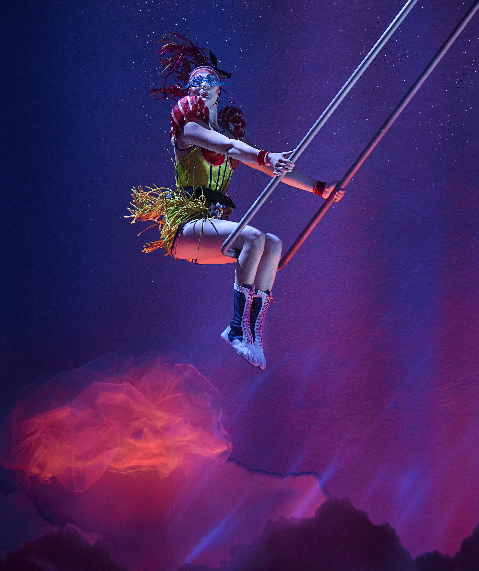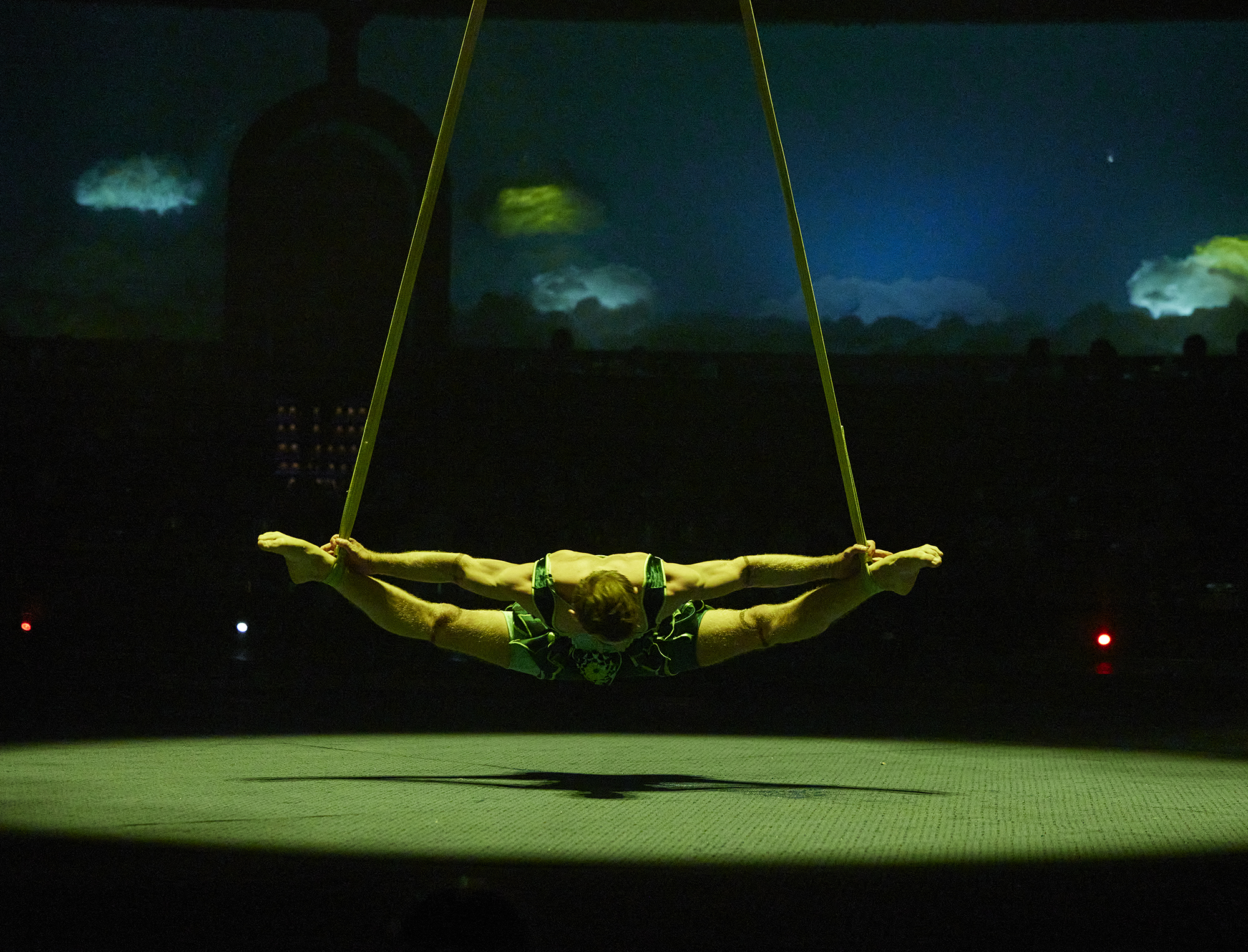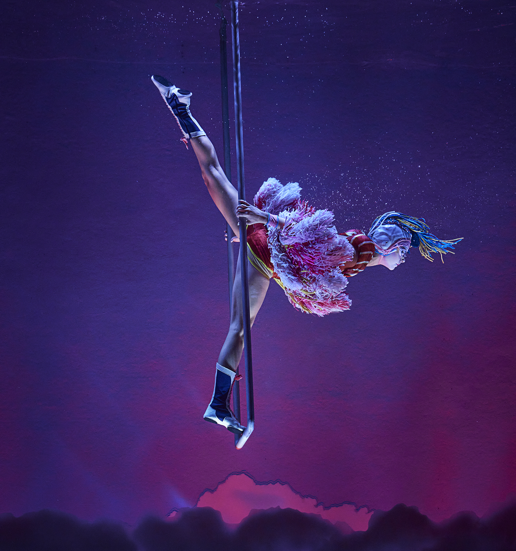 En este universo etéreo, las escenas se despliegan como ondas sobre una superficie serena, donde bailarines flotan como si la gravedad no existiera; acróbatas se sumergen, giran y avanzan como corrientes; aerialistas se elevan como recuerdos que resurgen, mientras el escenario respira, se transforma y se ilumina al ritmo de una marea infinita.