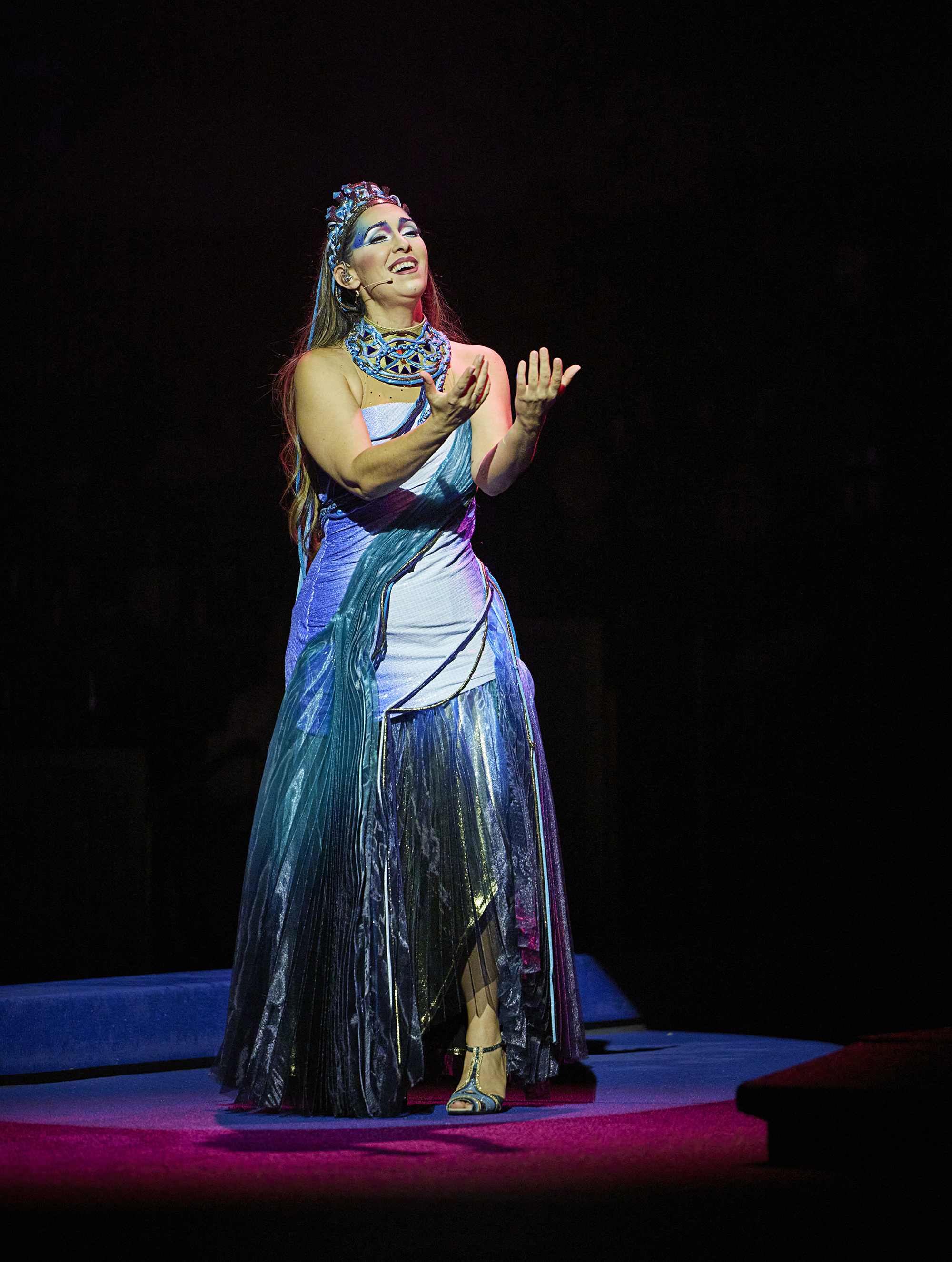 El espectáculo cobra vida dentro de un teatro diseñado especialmente para esta experiencia, inspirado en una flor de loto que se eleva 27 metros hacia el cielo. Un recinto creado para sumergir a casi 700 invitados en un sueño acuático de 360 grados. Aquí, el agua no es un fondo escénico, es un personaje, un narrador, un universo propio.